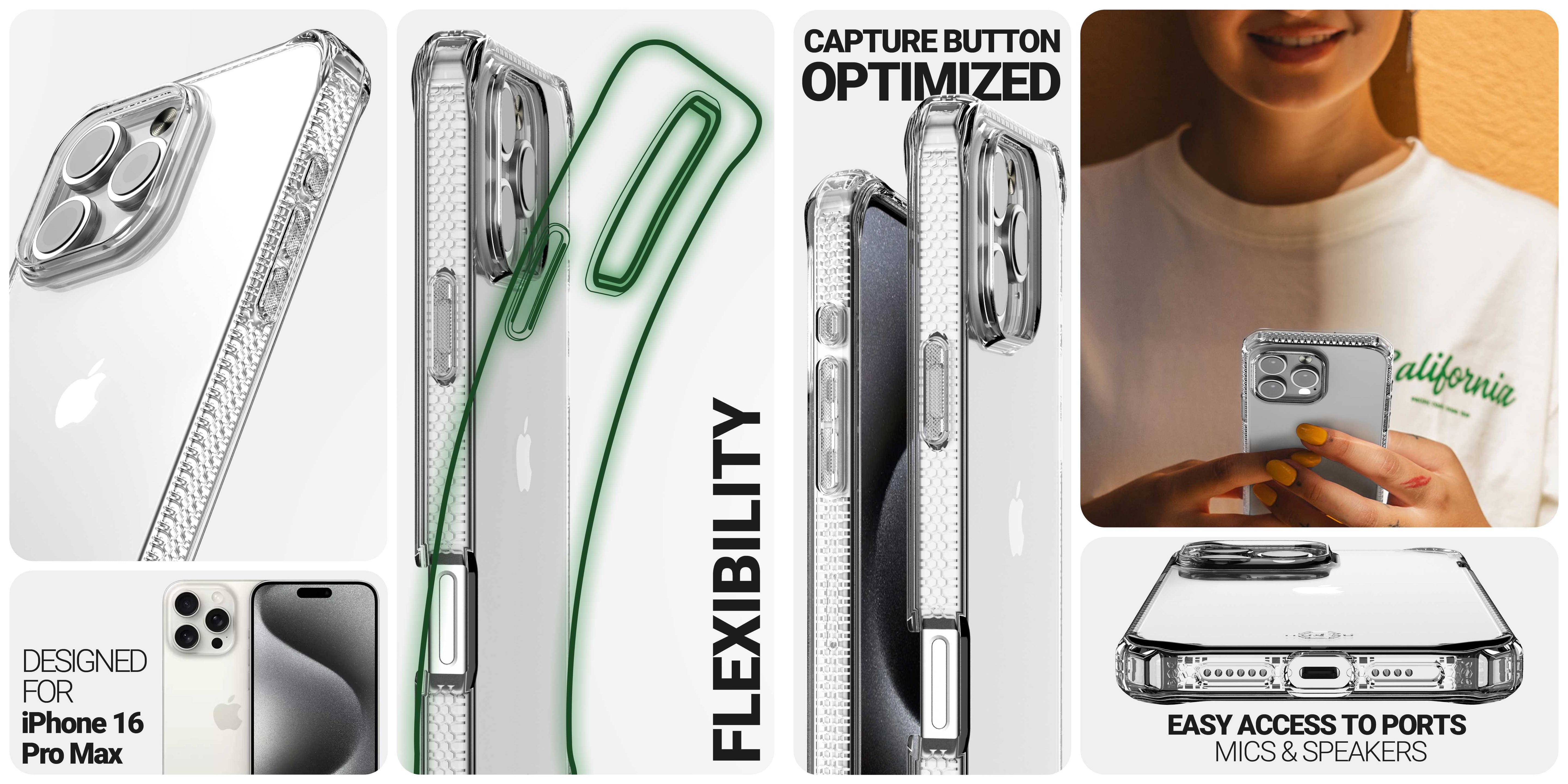 SPECTRUM_R CLEAR : Proprietary True Clear, Certified 100% Recycled, Mono-Material for Simplified Recycling. Offers AI-Enhanced Drop Protection up to 3M / 10FT, Superior Anti-Yellowing, and Antimicrobial Defense.