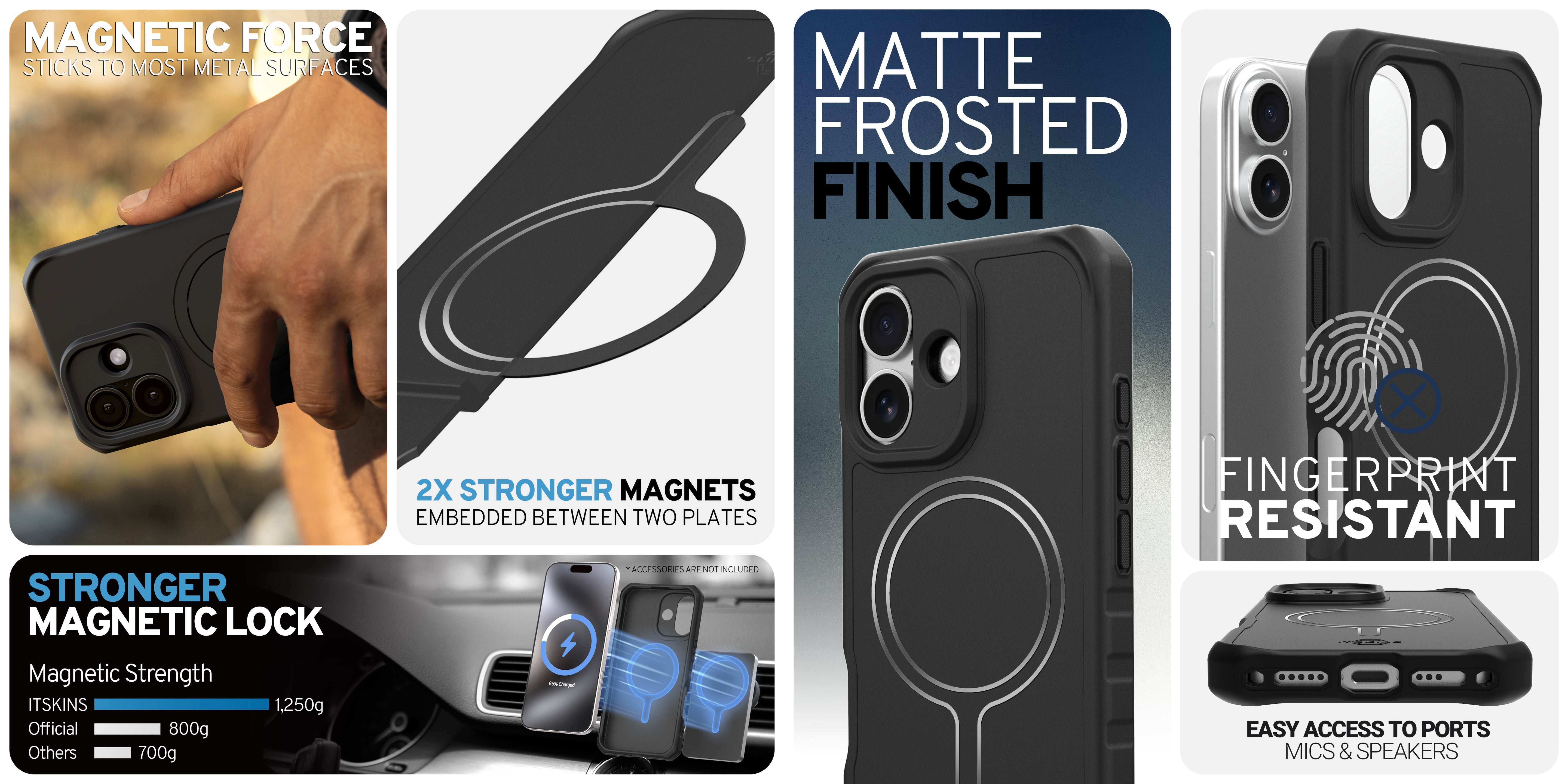 HYBRID R BOLD : features a sleek, blacked-out design with a fingerprint-resistant silk black back and a textured solid bumper for enhanced grip. Its anti-scratch back surface keeps the case looking pristine over time. Integrated with 2X Stronger MagSafe for secure attachment, AI-optimized for up to 3M / 10ft drop protection, and eco-friendly with Global Recycled Standard Certification. Equipped with air-pocket corners, antimicrobial defense, and responsive buttons, it's adventure-ready with a Lifetime Warranty.