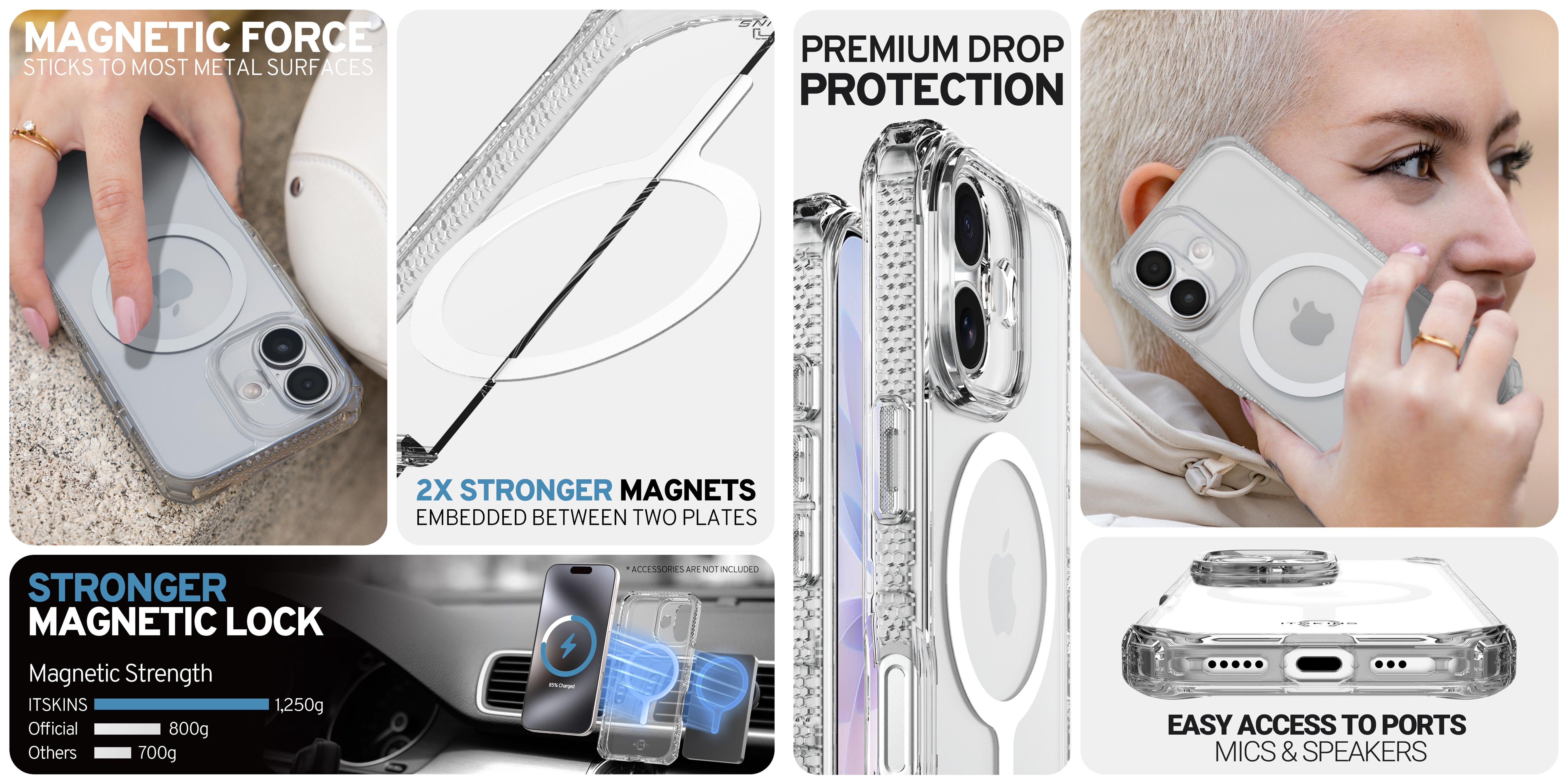 HYBRID_R CLEAR : Crafted for the Active, it features a never-yellowing, crystal-clear rigid polycarbonate back that showcases your phone's beautiful finish, 2X Stronger MagSafe and AI-Enhanced 3M / 10ft Drop Defense. It is Global Recycled Standard Certified, with an Eco-Friendly design incorporating Air-Pocket Corners, Antimicrobial Features, and Responsive Buttons. Comes with a Lifetime Warranty for Endless Adventures.