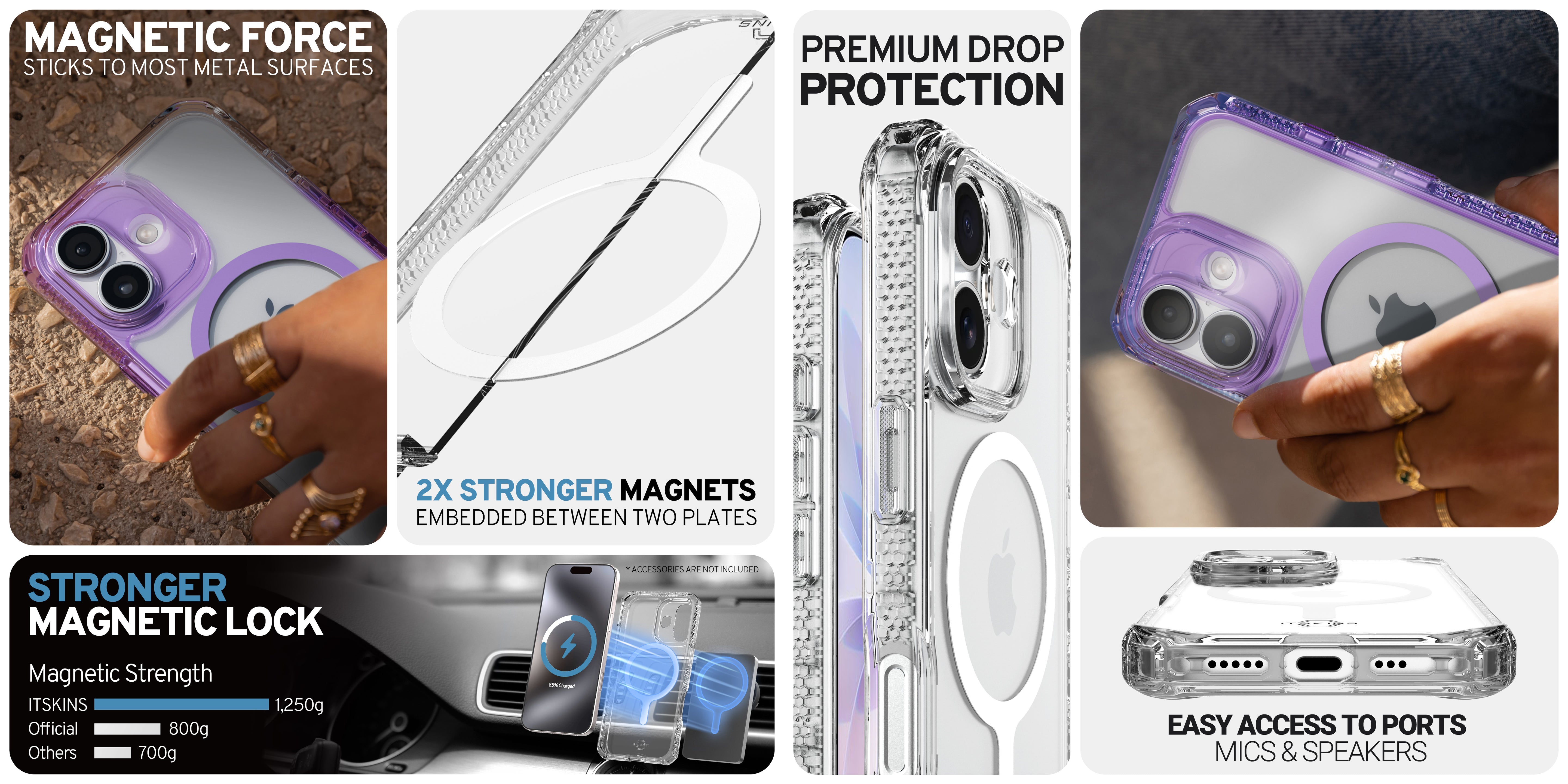 HYBRID_R MOOD : For the Fun-Loving Trendsetter: This iPhone Case Transforms Color in Sunlight, features a crystal-clear rigid polycarbonate back that showcases your phone's beautiful finish, 2X Stronger MagSafe, and AI-Enhanced 3M / 10ft Drop Defense. Global Recycled Standard Certified, with an Eco-Friendly design incorporating Air-Pocket Corners, Antimicrobial Protection, and Responsive Buttons. Lifetime Warranty for the Vibrant Explorer.