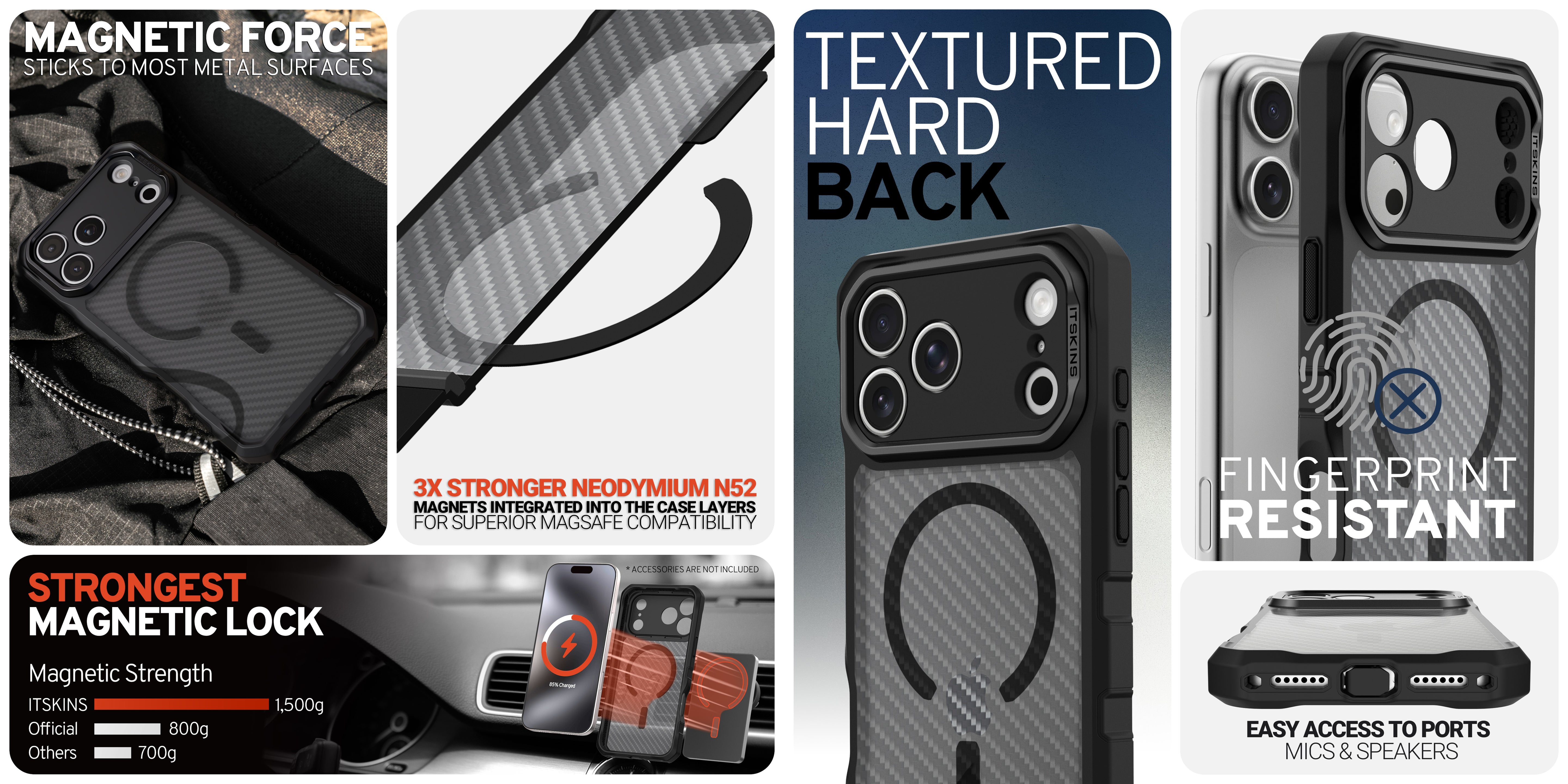 SUPREME R meets MIL-SPECS for military-grade defense, includes a tactical grip for enhanced hand security, and comes with detachable port covers for added protection. Engineered with XXL Air Corners for top-tier impact deflection. Boasts a 3X Stronger MagSafe for maximum attachment strength with accessories.