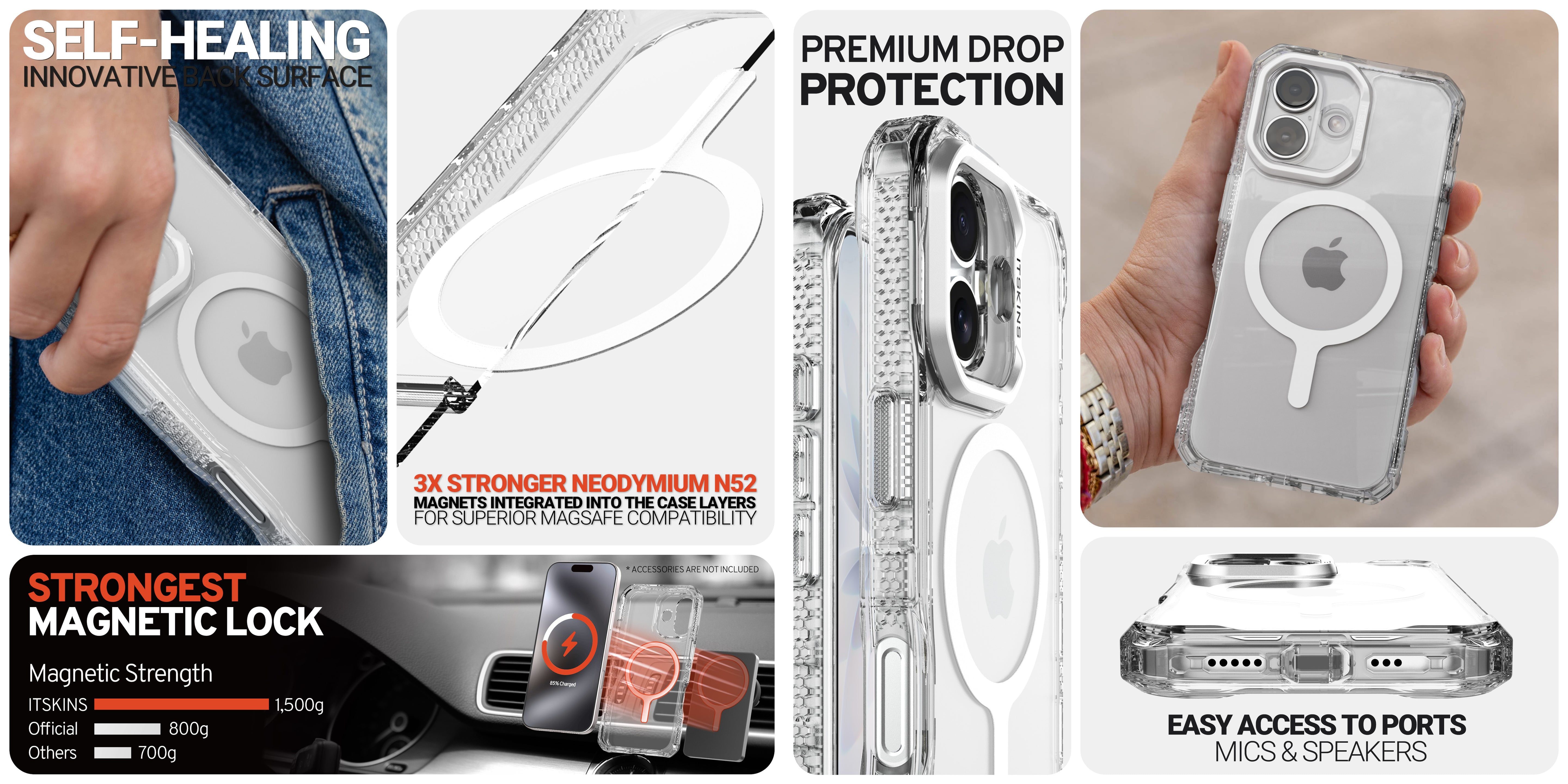 SUPREME_R CLEAR : features a self-healing, scratch-resistant surface for superior clarity and durability, providing extreme drop protection. Enhanced with AI technology for reinforced impact absorption around the interior perimeter, it ensures safety from drops up to 4.5M / 15 Feet.