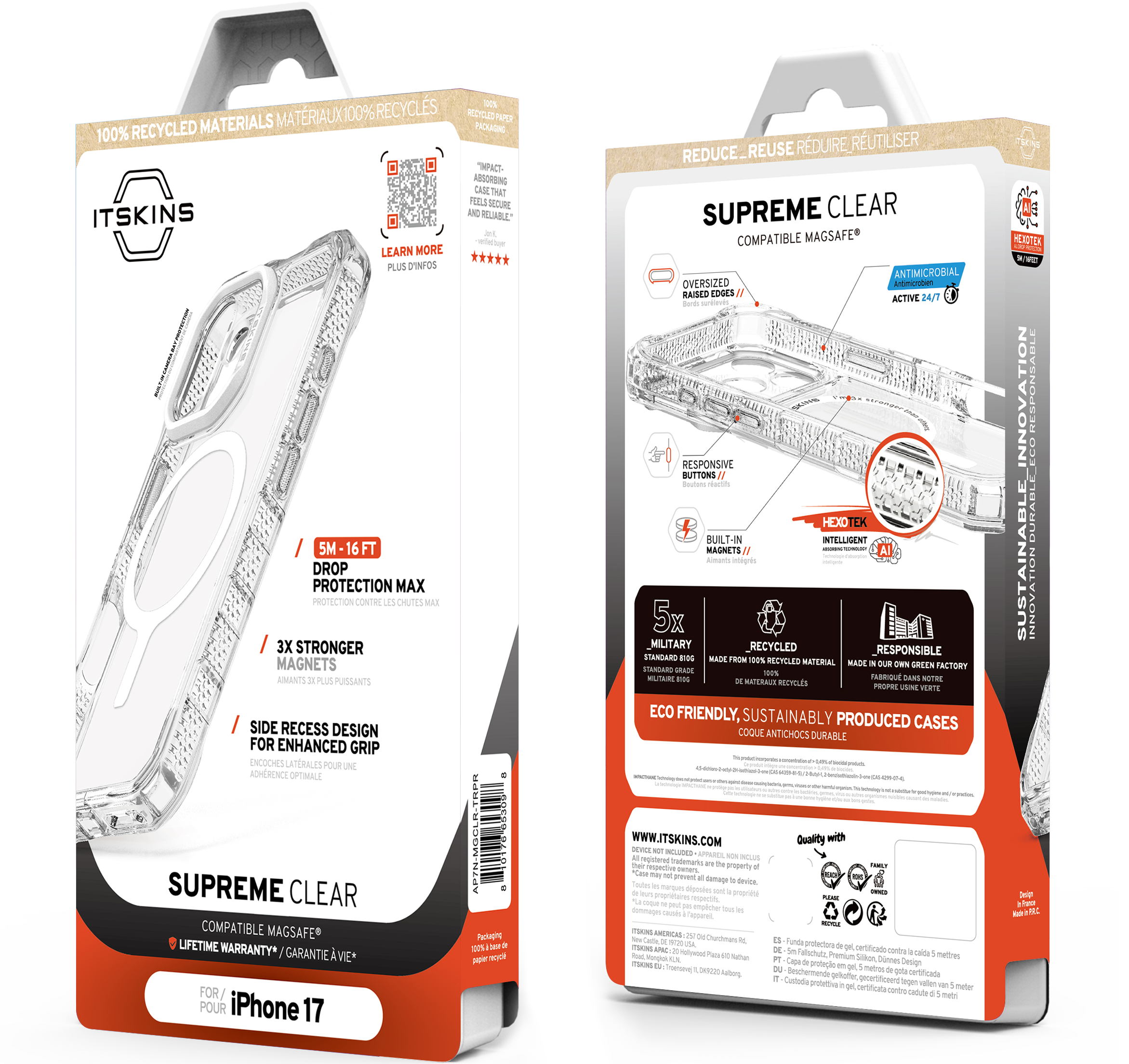 SUPREME_R meets MIL-SPECS for armored defense, with a tactical grip design for added security in hand. Engineered with XXL Air Corners for advanced impact deflection. Boasts 3X Stronger MagSafe for maximum attachment strength with accessories. Eco-designed and Global Recycled Standard Certified for sustainable protection.