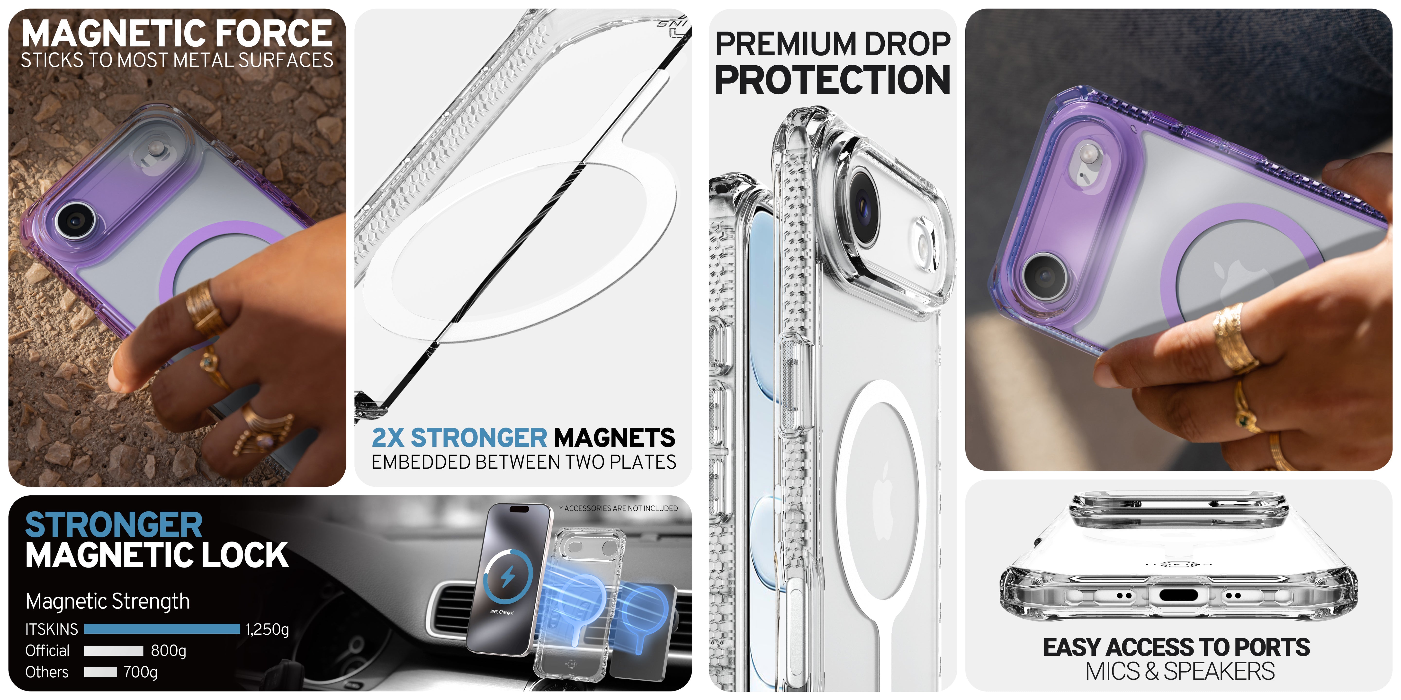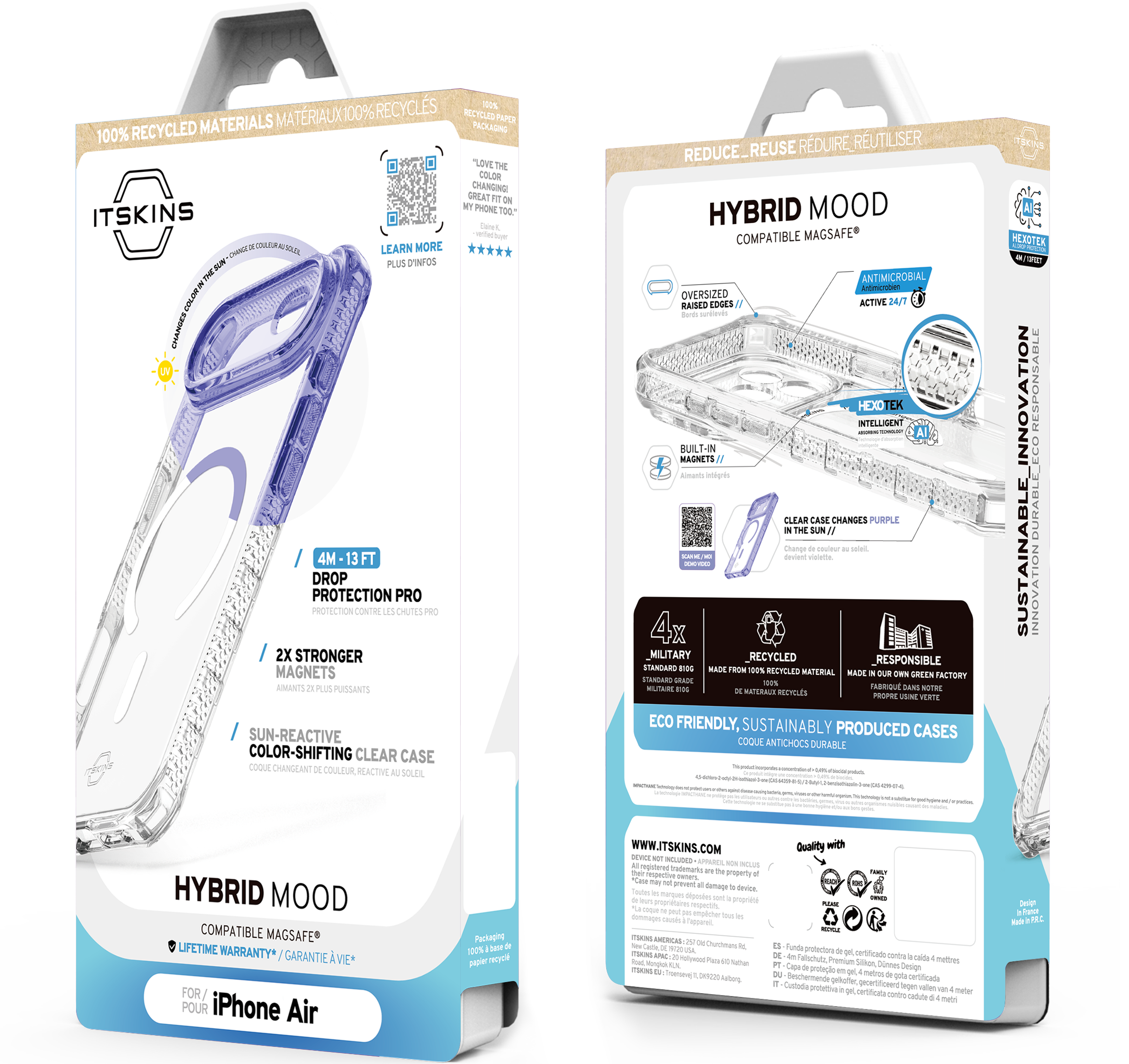 HYBRID_R MOOD : For the Fun-Loving Trendsetter: This iPhone Case Transforms Color in Sunlight, features a crystal-clear rigid polycarbonate back that showcases your phone's beautiful finish, 2X Stronger MagSafe, and AI-Enhanced 3M / 10ft Drop Defense. Global Recycled Standard Certified, with an Eco-Friendly design incorporating Air-Pocket Corners, Antimicrobial Protection, and Responsive Buttons. Lifetime Warranty for the Vibrant Explorer.