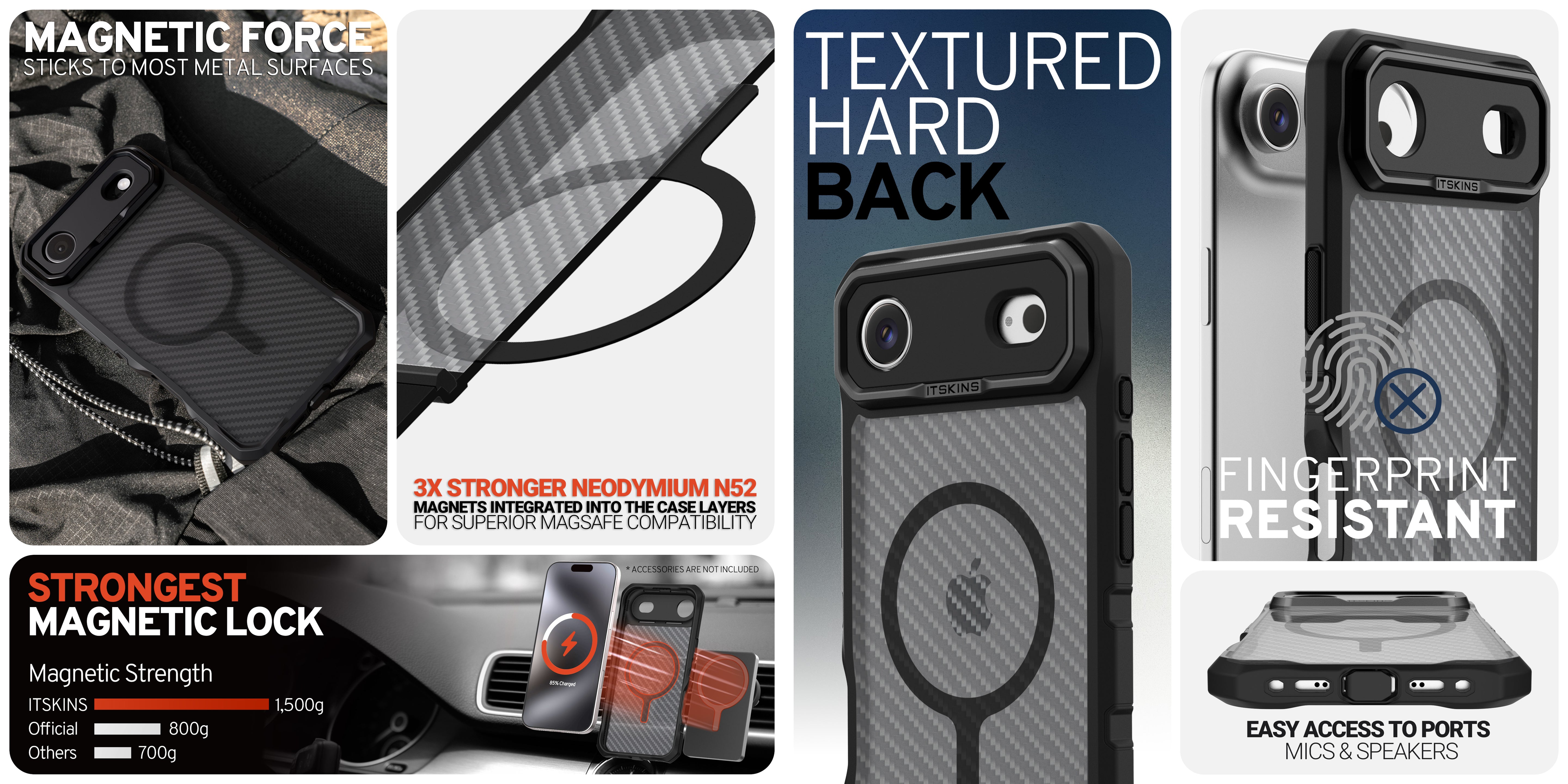 SUPREME R meets MIL-SPECS for military-grade defense, includes a tactical grip for enhanced hand security, and comes with detachable port covers for added protection. Engineered with XXL Air Corners for top-tier impact deflection. Boasts a 3X Stronger MagSafe for maximum attachment strength with accessories.