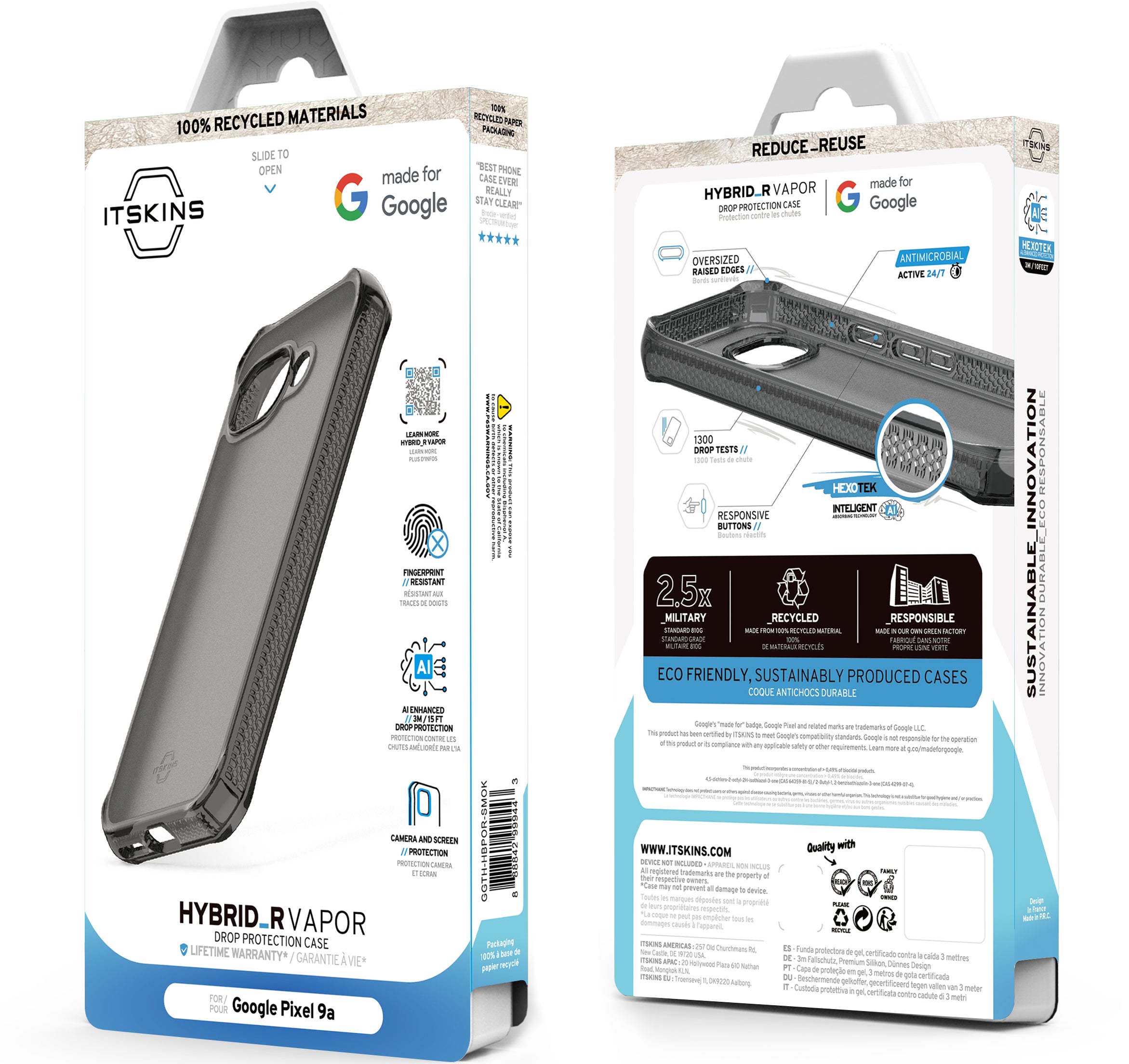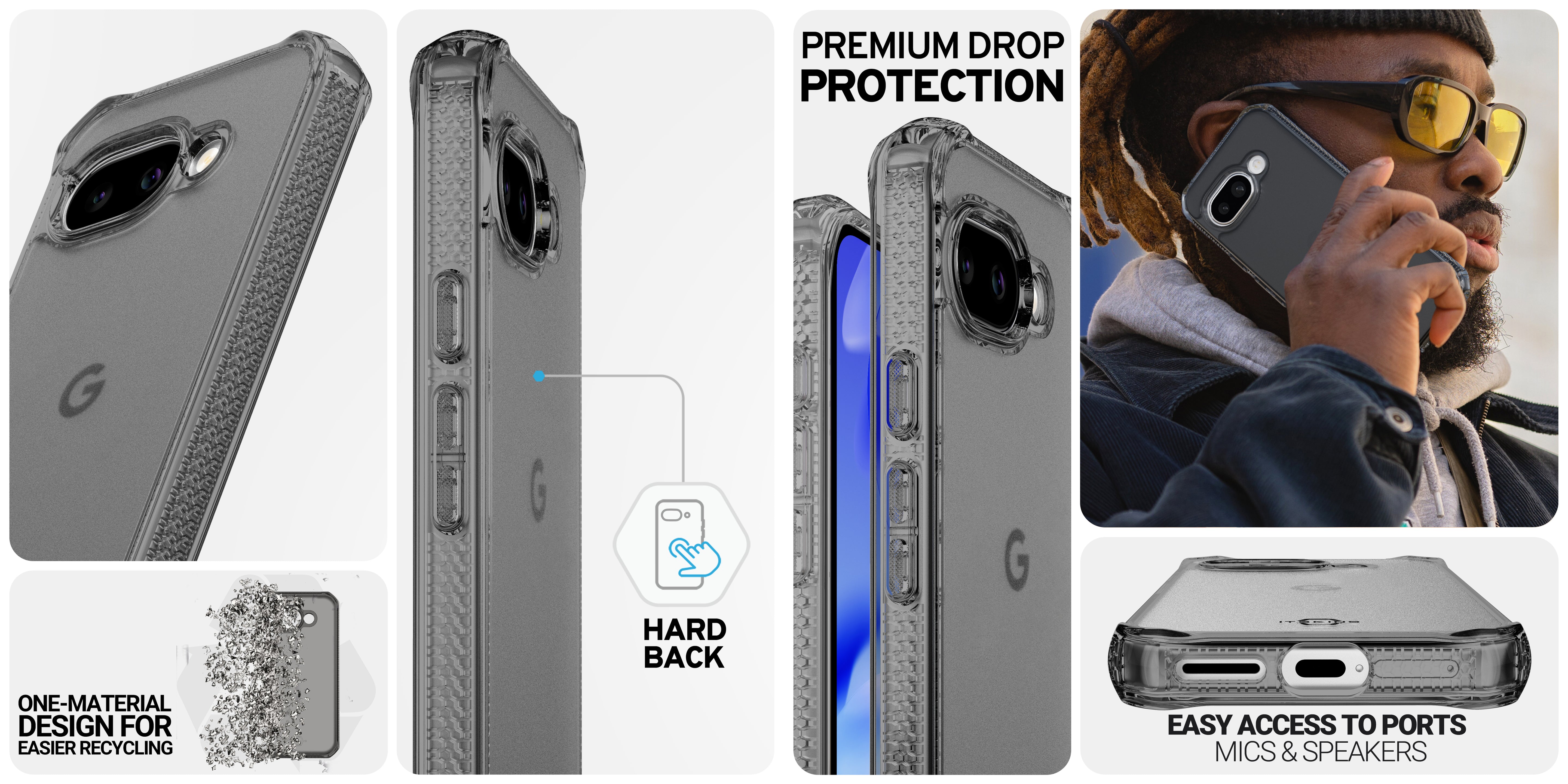HYBRID_R // VAPOR is a slim, frosted case has a subtle matte hardback and a glossy perimeter that lets you show off your phone's premium design. It's anti-fingerprint surface keeps your case looking beautiful.