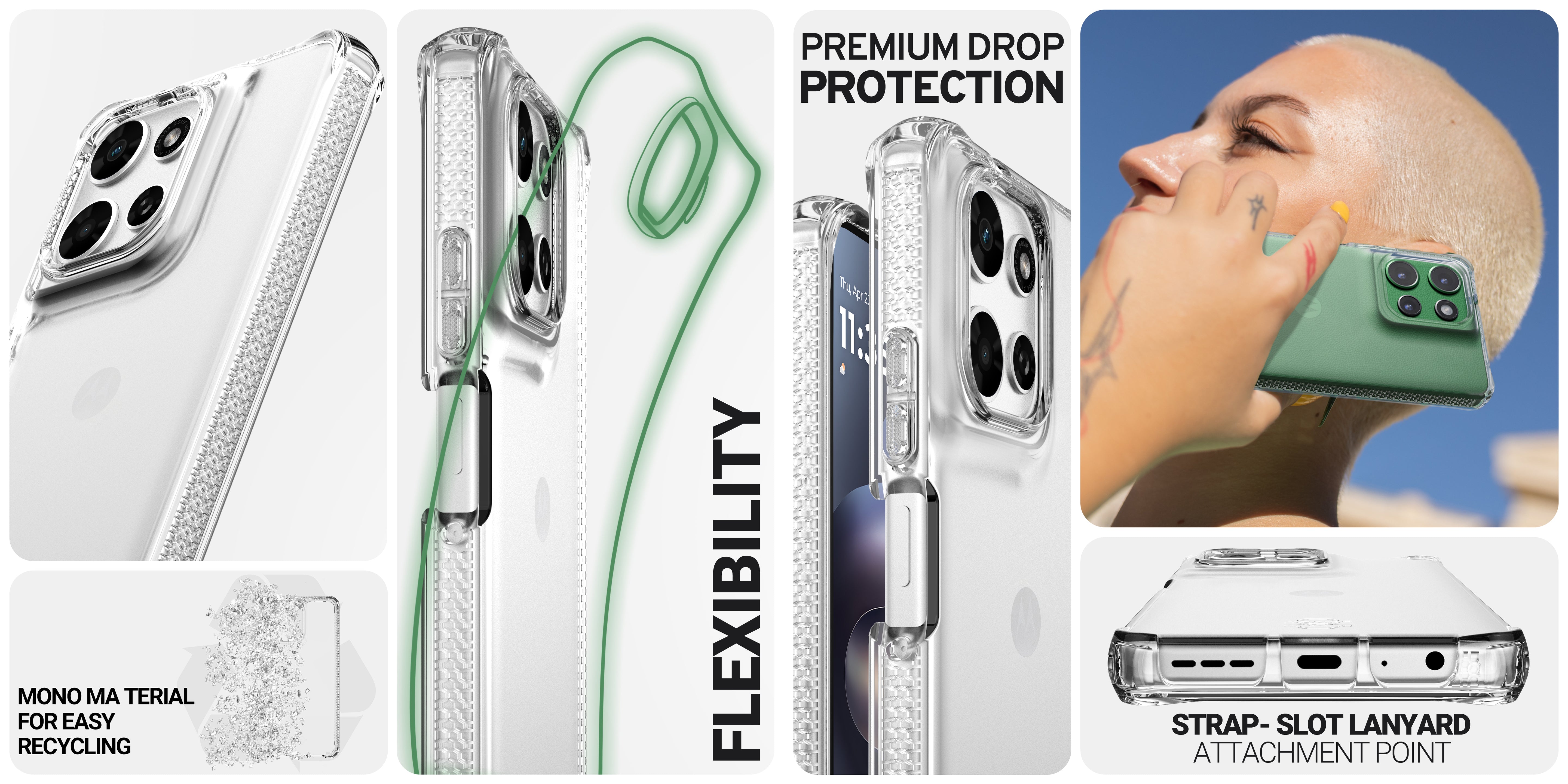 SPECTRUM_R // CLEAR has been certified by the Global Recycled Standard for using 100% recyclable materials and produced with sustainable methods wherever possible. It delivers premium drop protection and anti-yellowing antimicrobial defense.