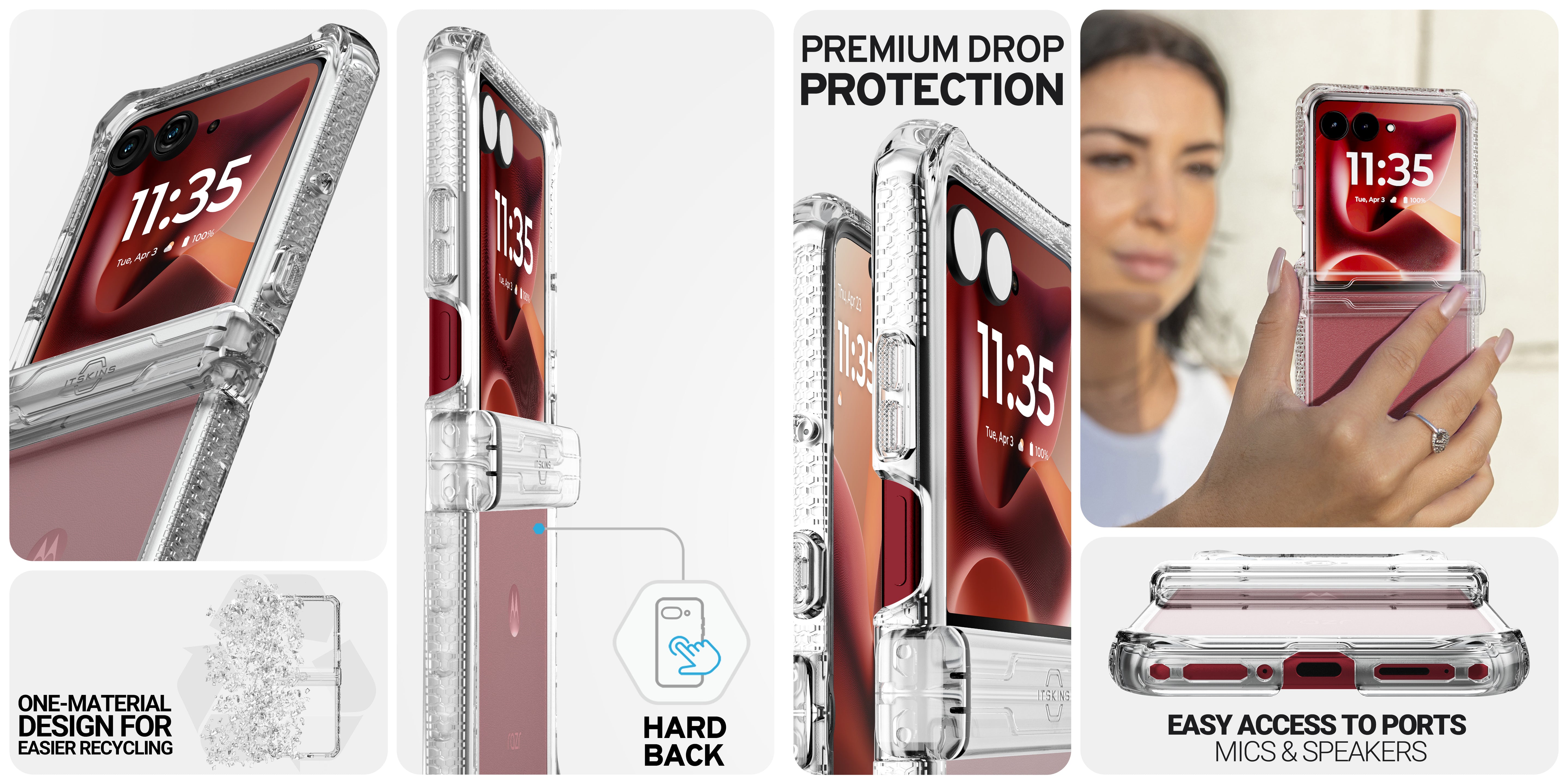 HYBRID_R // CLEAR has been certified by the Global Recycled Standard for using 100% recyclable materials and produced with sustainable methods wherever possible. It delivers premium drop protection and anti-yellowing antimicrobial defense.