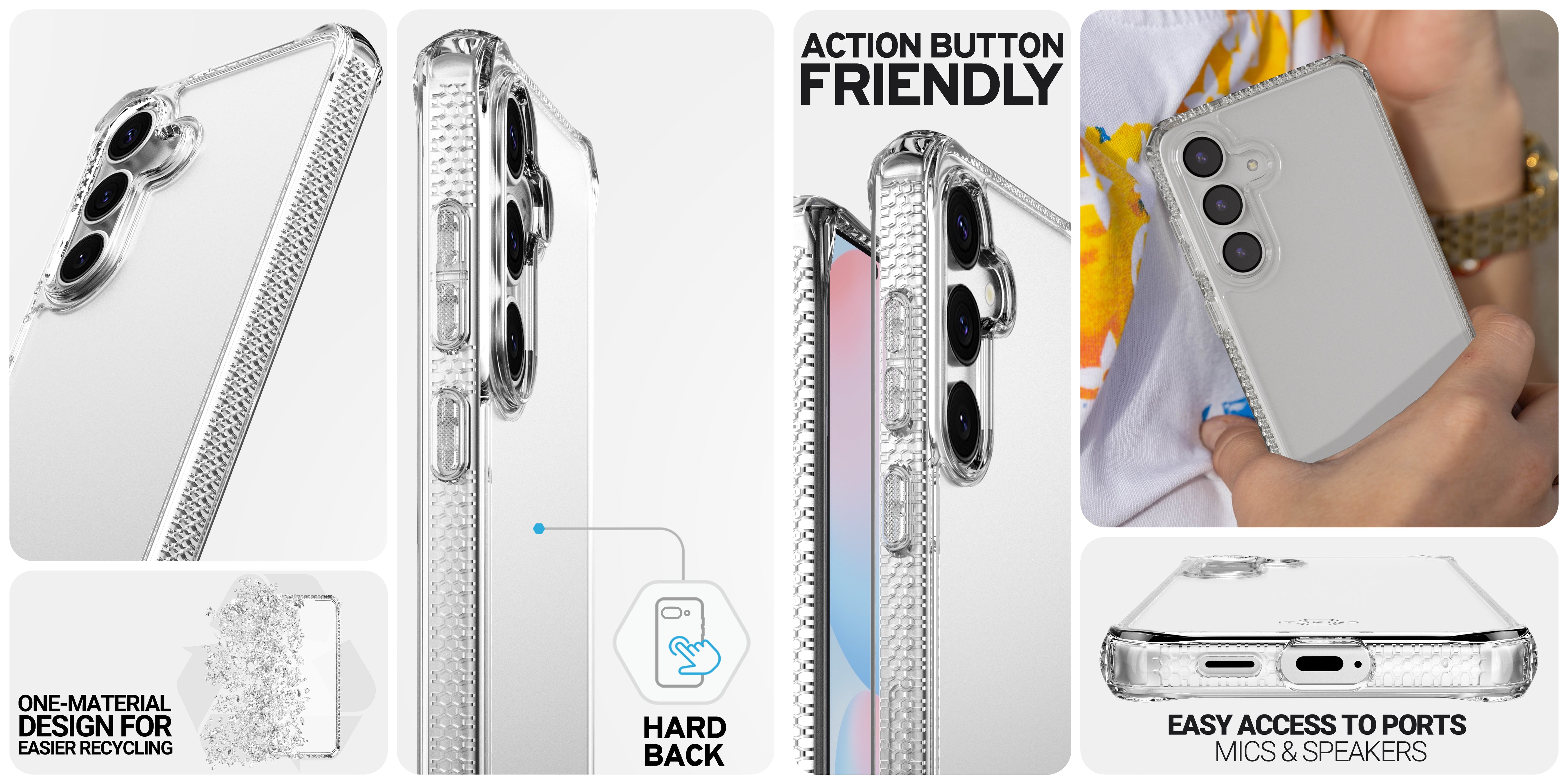 HYBRID_R // CLEAR has been certified by the Global Recycled Standard for using 100% recyclable materials and produced with sustainable methods wherever possible. It delivers premium drop protection and anti-yellowing antimicrobial defense.