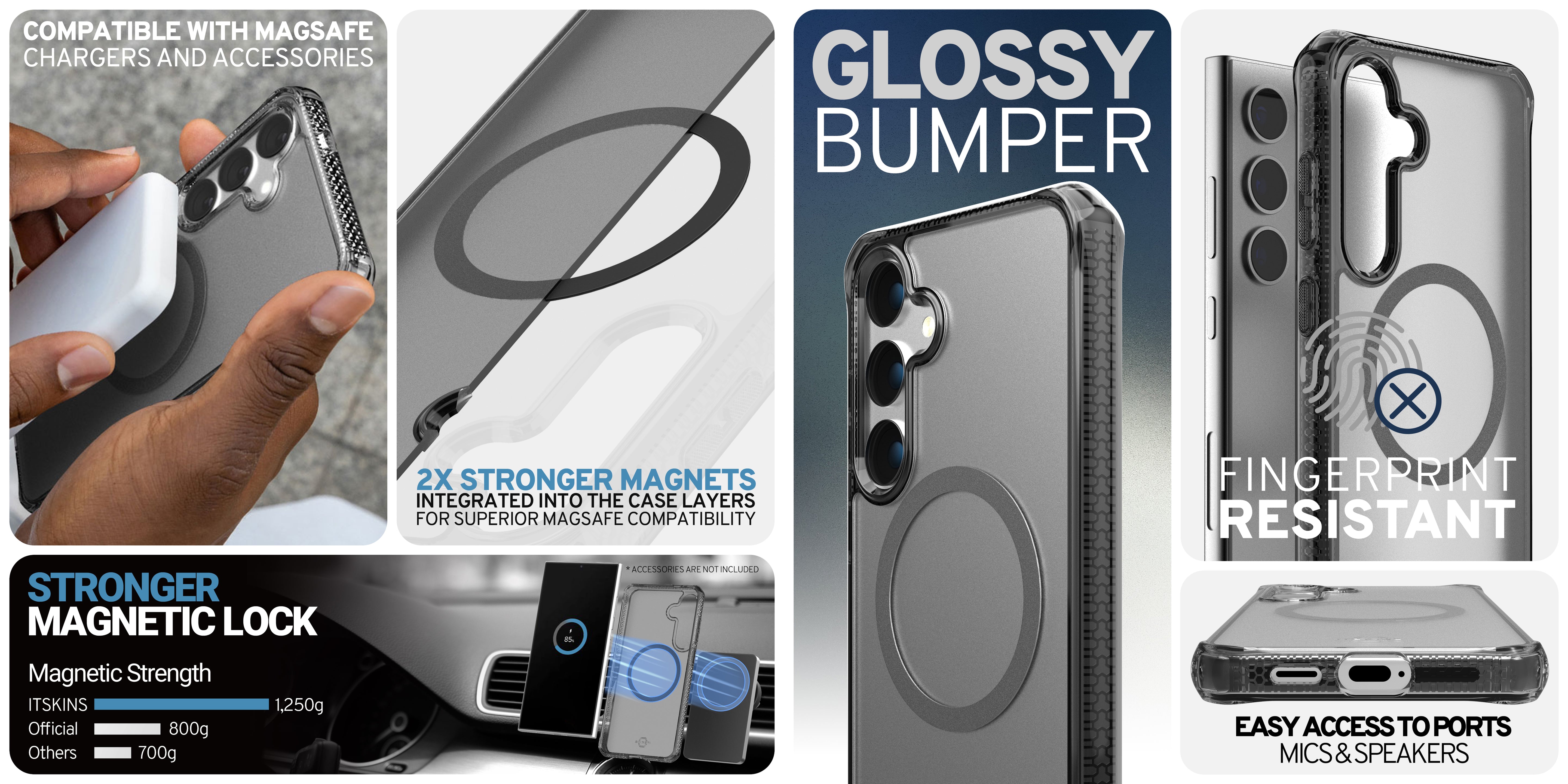 HYBRID R // VAPOR w/ MagSafe® This slim, frosted case has a subtle matte hardback and a glossy perimeter that lets you show off your phone's premium design. It's anti-fingerprint surface keeps your case looking beautiful.