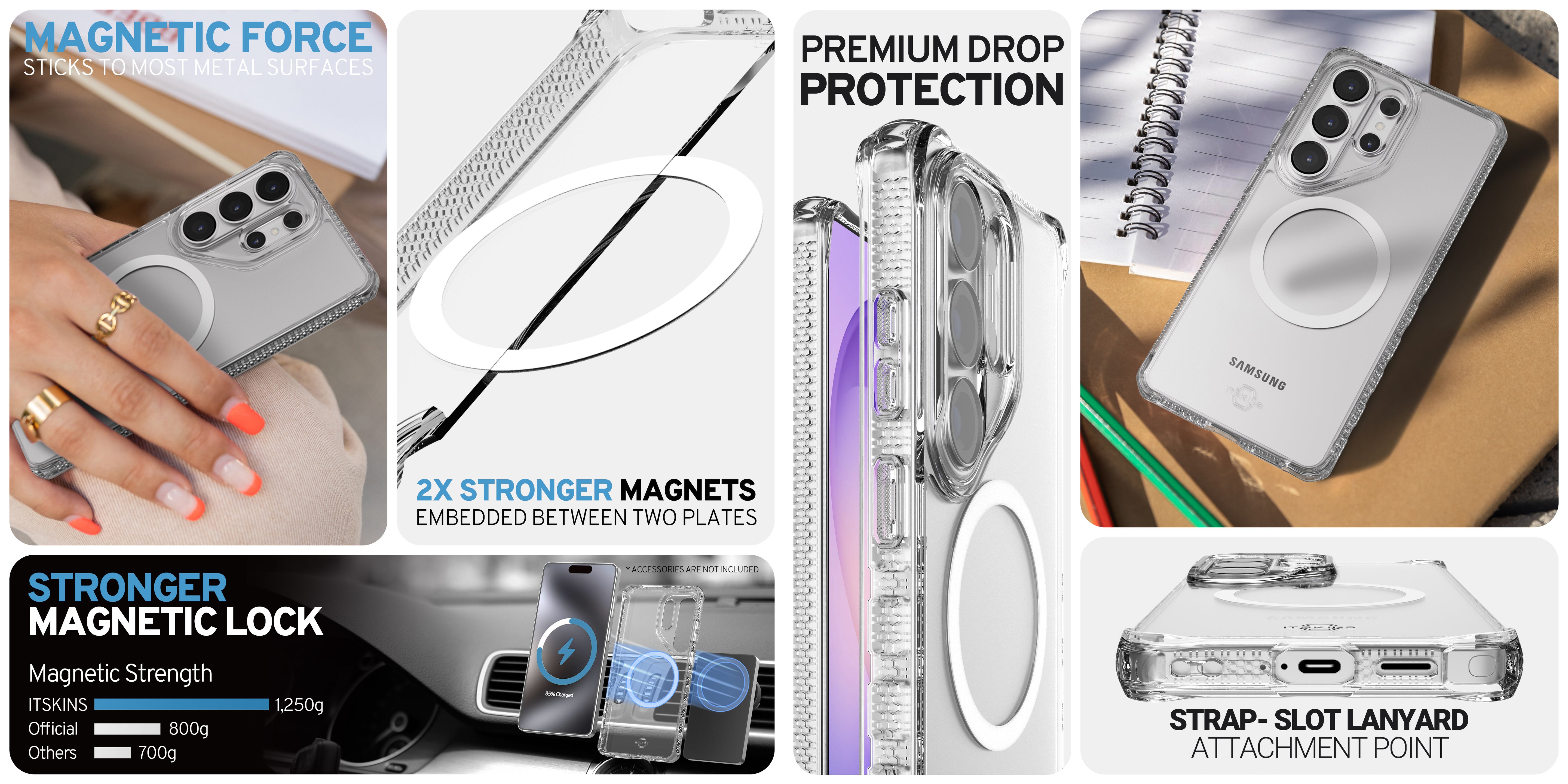 HYBRID R // CLEAR w/ MagSafe Crafted for the Active, it features a never-yellowing, crystal-clear rigid polycarbonate back that showcases your phone's beautiful finish, 2X Stronger MagSafe and AI-Enhanced 4M / 13FT Drop Defense. It is Global Recycled Standard Certified, with an Eco-Friendly design incorporating Air-Pocket Corners, Antimicrobial Features, and Responsive Buttons. Comes with a Lifetime Warranty for Endless Adventures.