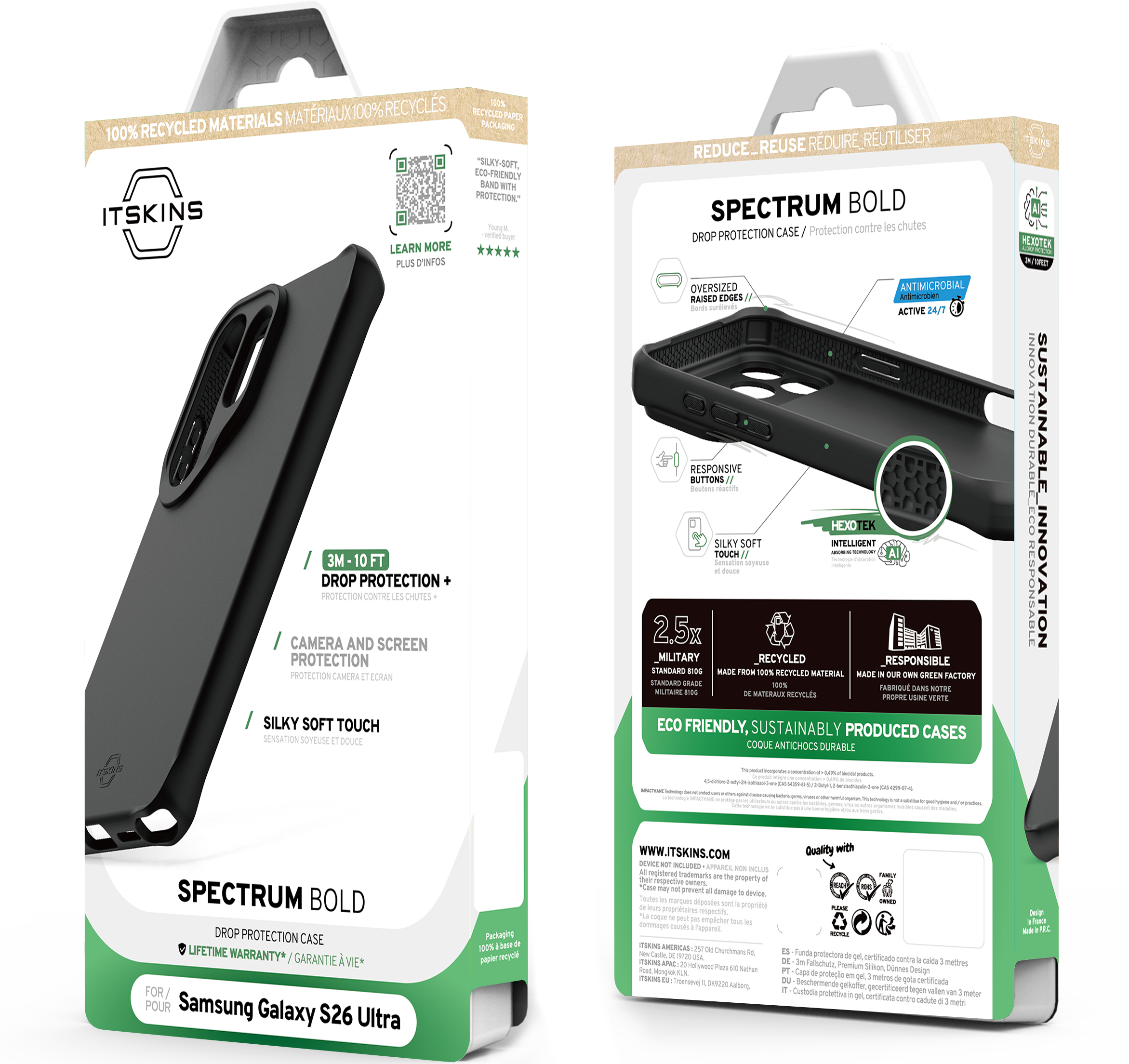 SPECTRUM_R // BOLD has a silky-soft feel and has been certified by the Global Recycled Standard for using 100% recyclable materials and produced with sustainably. It delivers premium drop protection and antimicrobial defense.