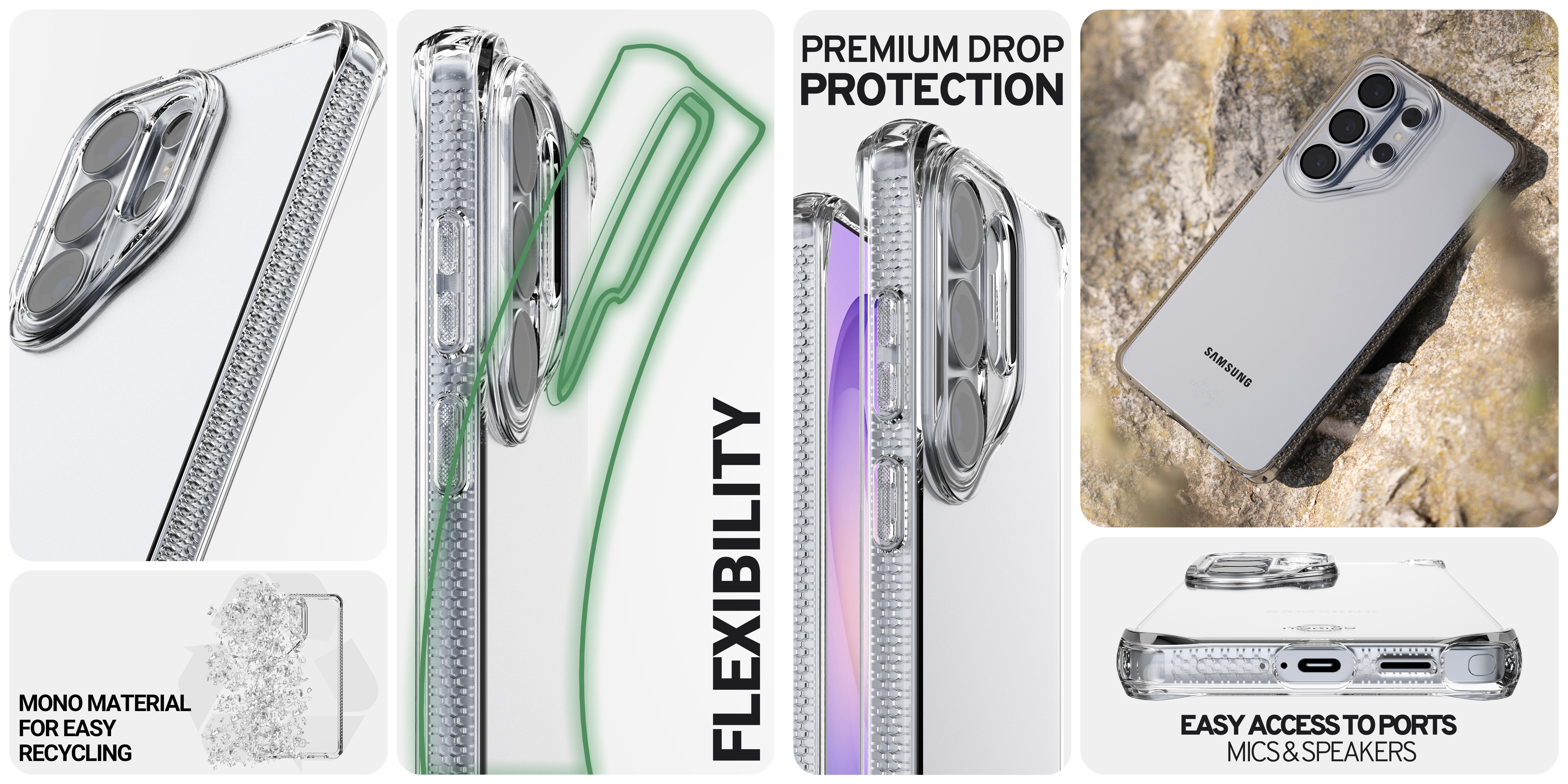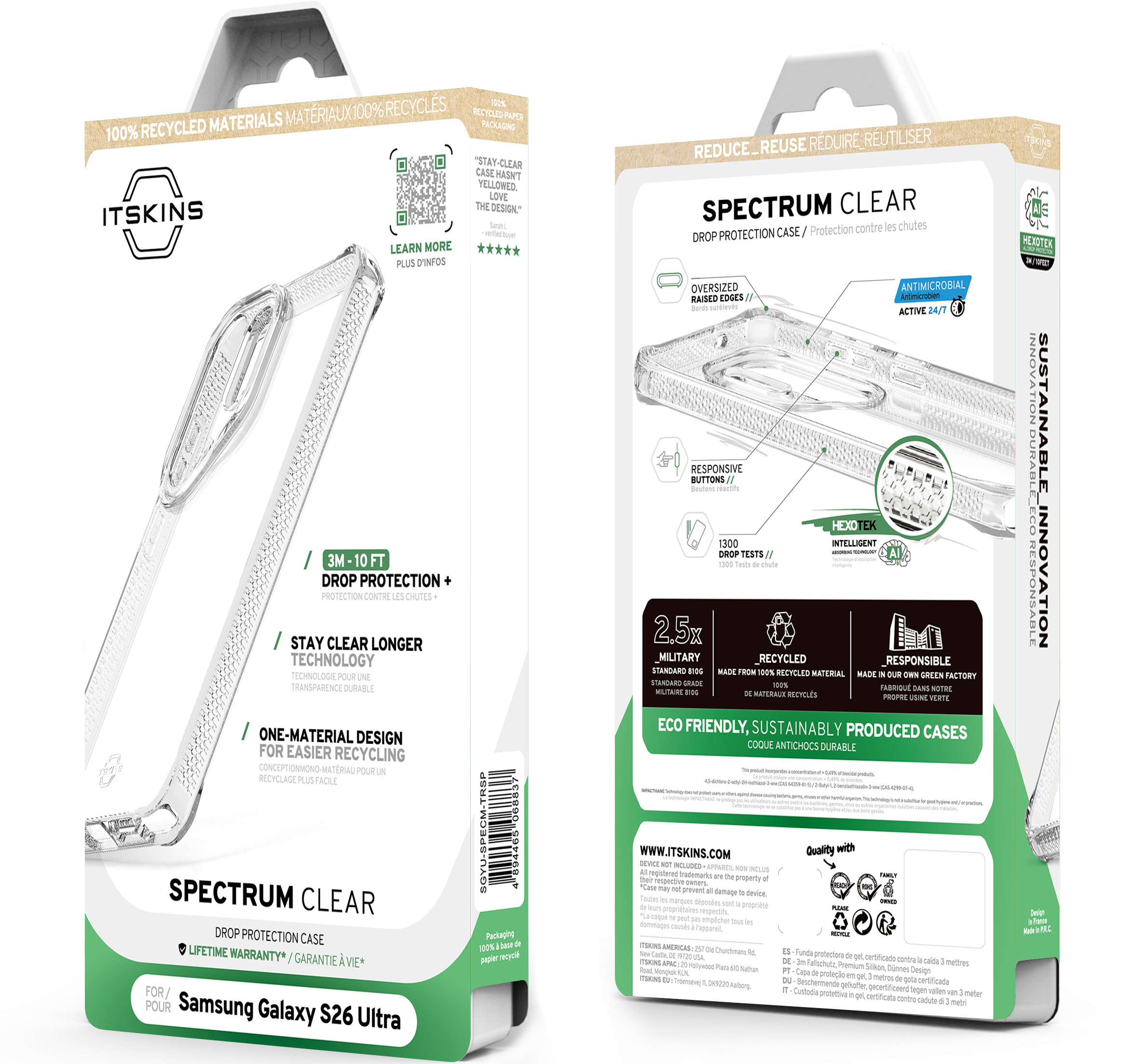 SPECTRUM_R // CLEAR has been certified by the Global Recycled Standard for using 100% recyclable materials and produced with sustainable methods wherever possible. It delivers premium drop protection and anti-yellowing antimicrobial defense.