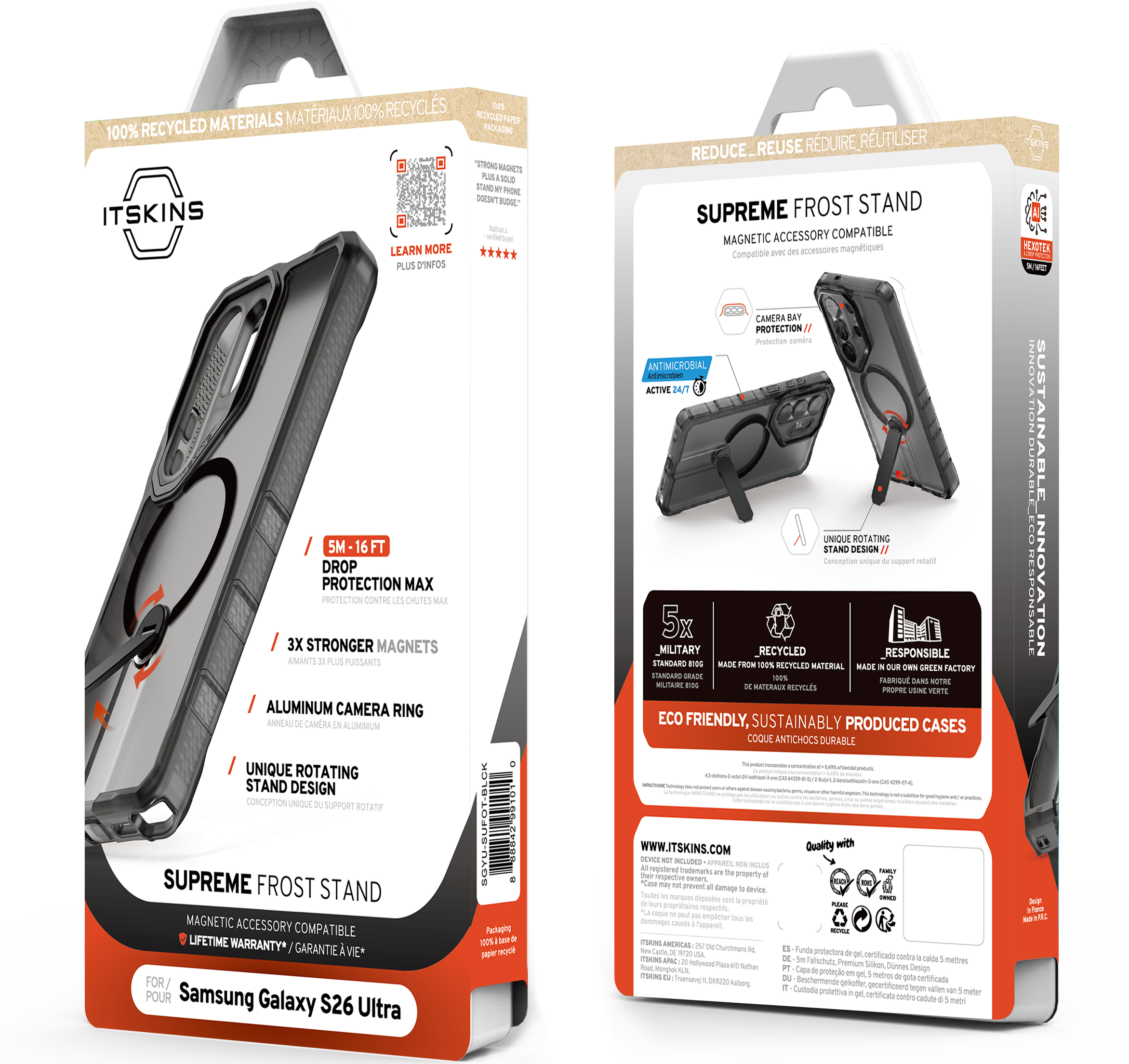 The SUPREME // FROST STAND w/ MagSafe is our pinnacle of protection. The case features an Aluminum Camera Ring for enhanced camera protection and an Aluminum Button for superior tactile feedback.